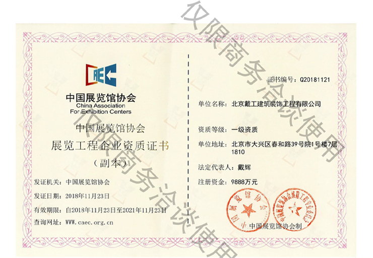 中國(guó)展覽館協(xié)會(huì)展覽陳列工程設(shè)計(jì)與施工一體化壹級(jí)資質(zhì)